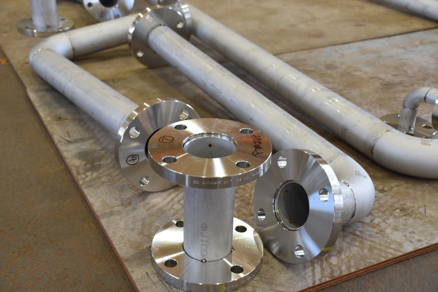 当社工場内にてプラント配管を製作・加工し、溶接して現場で取り付ける作業となります。
